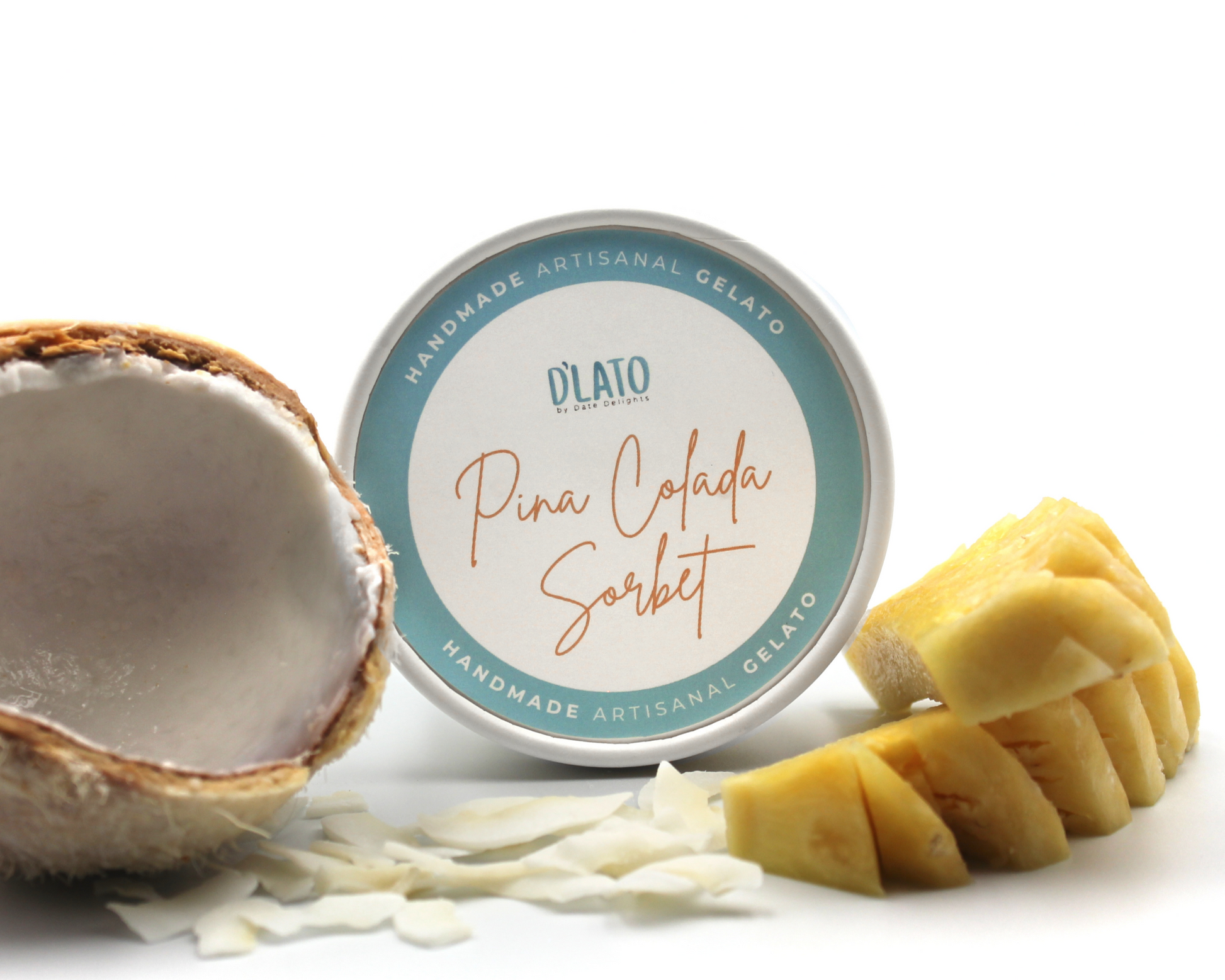 Tropical and creamy, D'Lato’s Piña Colada Sorbet blends pineapple and coconut flavors for a refreshing, island-inspired escape. Real fruit, no blender needed.